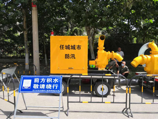 ①水泵機(jī)組移動(dòng)拖車為獨(dú)立底盤   ②柴油機(jī)、水泵為大功率傳動(dòng)軸連接